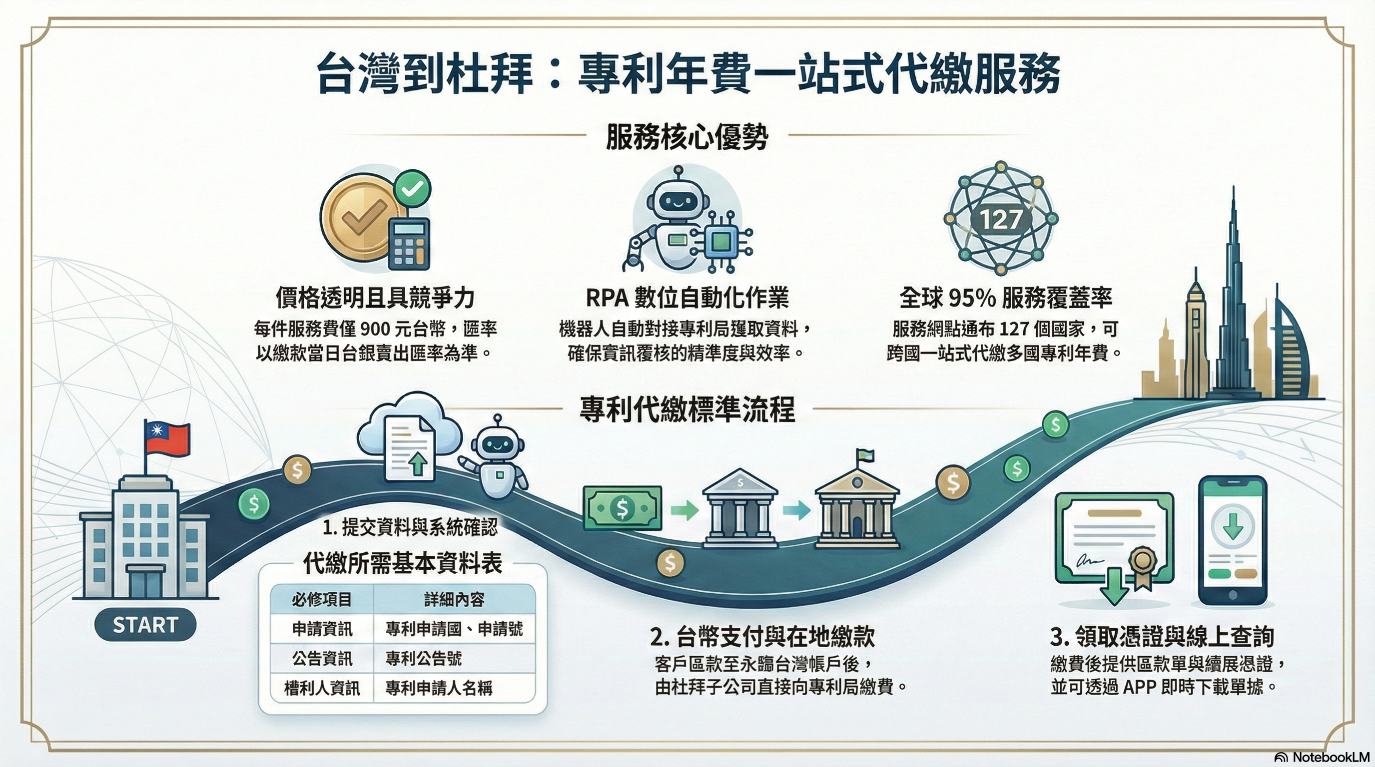 台灣企業或個人有杜拜專利,永輝專利年費之代收代付服務流程為何?